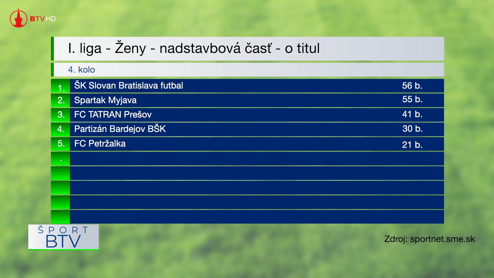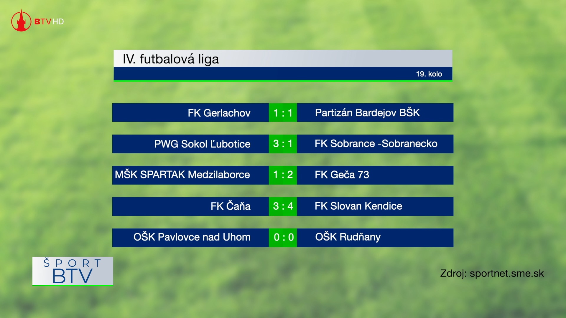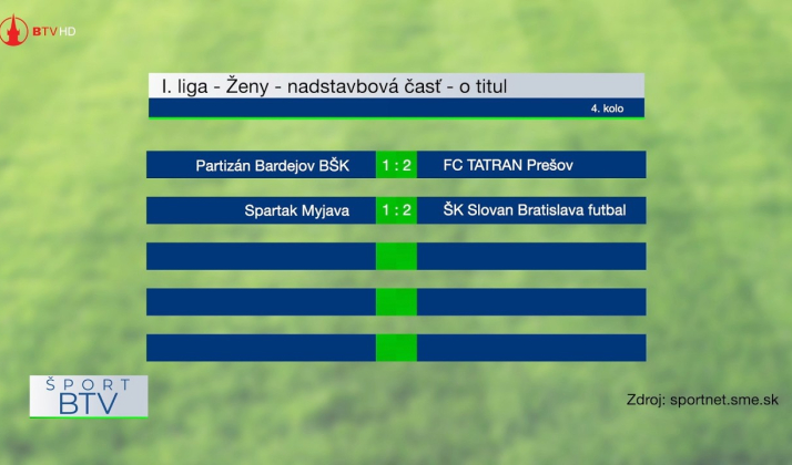 27.04.2026 | Šport Výsledkový servis + pozvánka 27. 4. 2026 Výsledkový servis + pozvánka 27. 4. 2026 © Bardejovská televízna spoločnosť, s.r.o. Výsledkový servis + pozvánka 27. 4. 2026 Zdroj: © Bardejovská televízna spoločnosť, s.r.o.